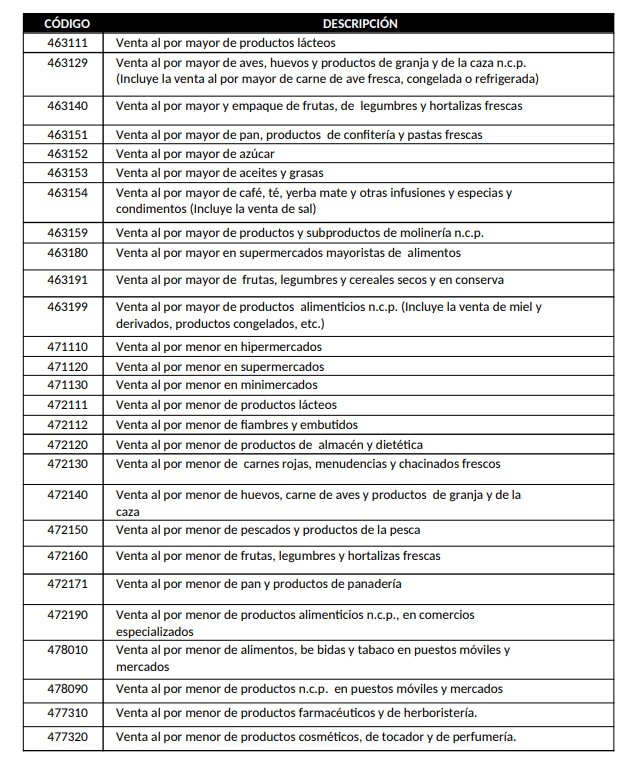 La Administración Federal de Ingresos Públicos estableció que el comercio donde se efectúe la compra deberá estar inscripto en el Organismo bajo algunos de los siguientes códigos de actividad: