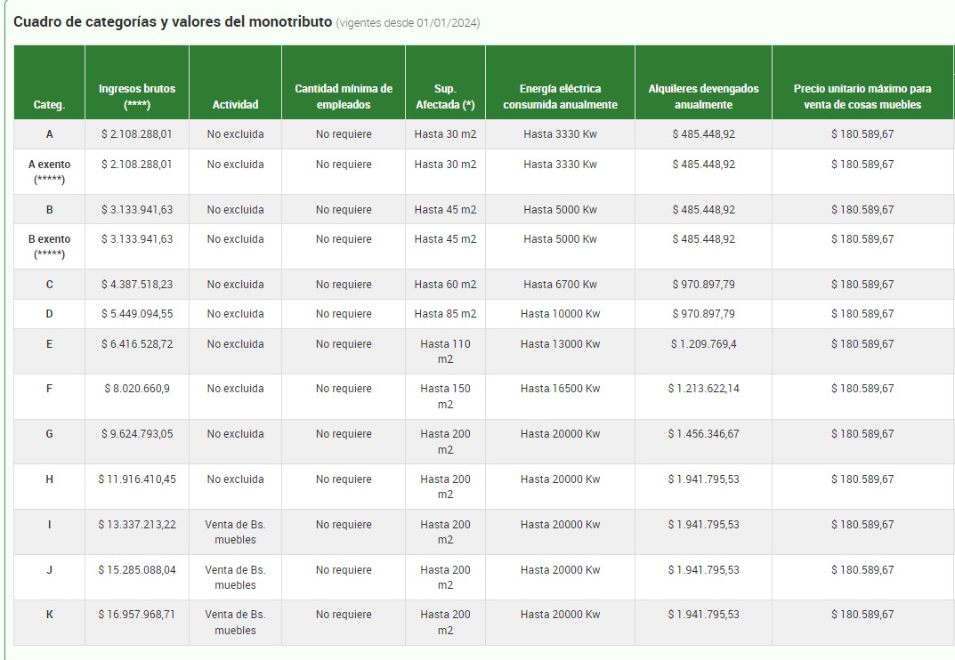 AFIP publicó finalmente la tabla de Monotributo con los nuevos valores vigentes desde el 01/01/2024: