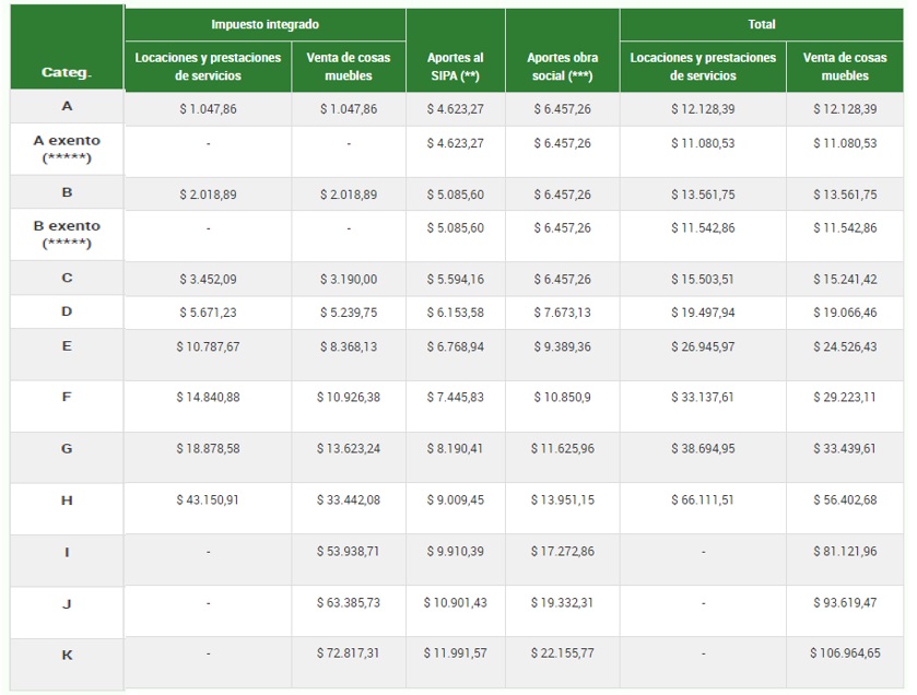 Por último, y un dato no menor, dejamos presentados a continuación los nuevos importes a pagar por cada categoría:
